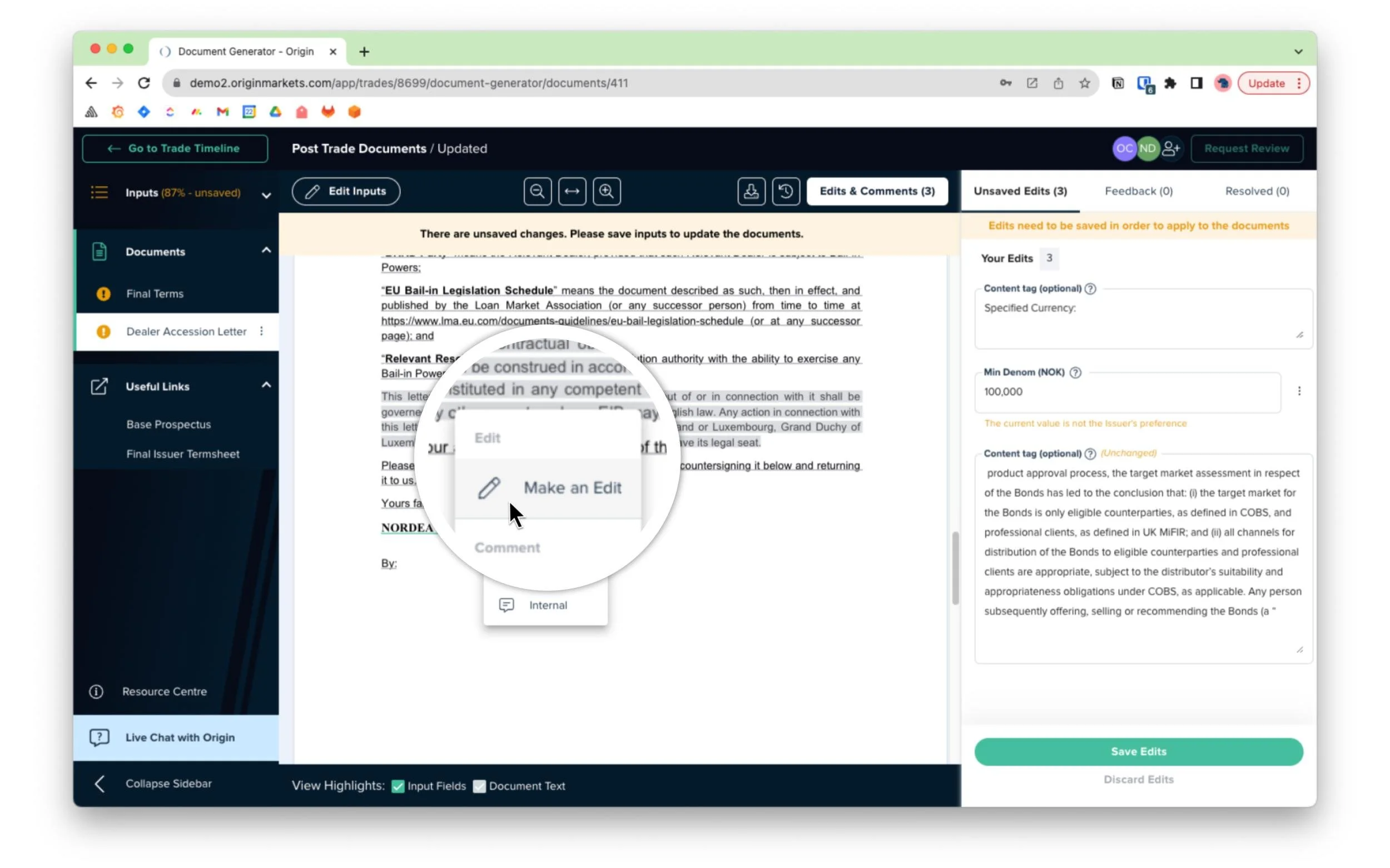 Our veteran clients will know the pain of trying to move a comma or reword a sentence in hardcoded parts of a document during a trade. The document generator now allows you to edit any text present on the generated documents.